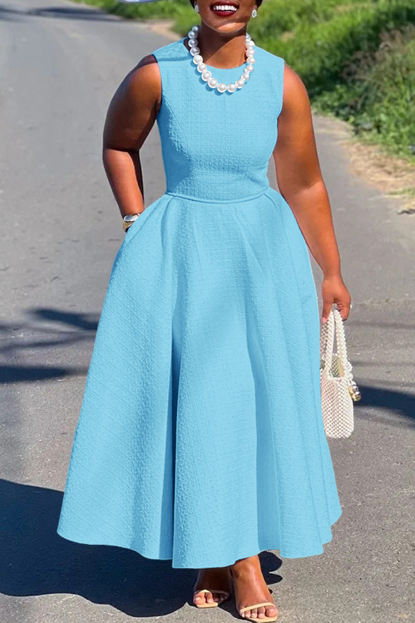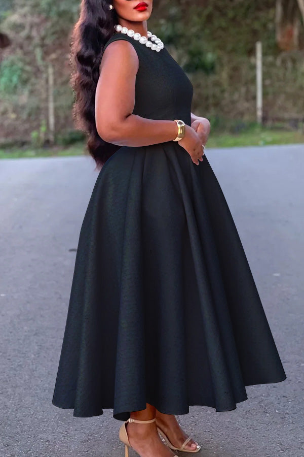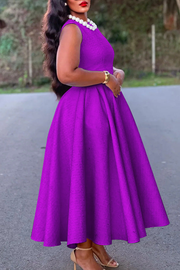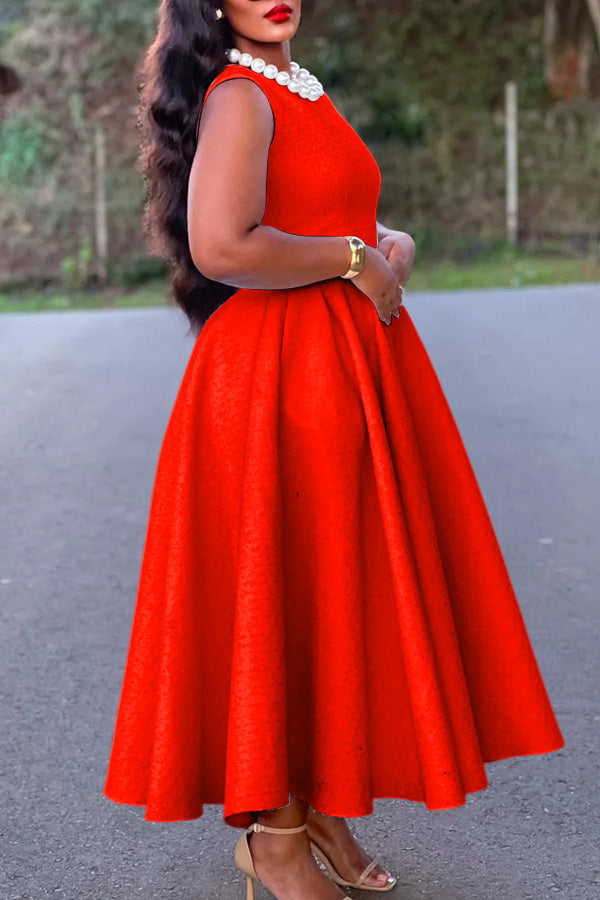Introducing the stunning and elegant boat neck sleeveless swing dress, a perfect addition to your wardrobe! The dress features a classic boat neck design and a flattering sleeveless silhouette, making it elegant and comfortable. The swing silhouette adds a touch of playfulness to the dress, and it is made from premium skin-pressed fabric, making it both stylish and durable.