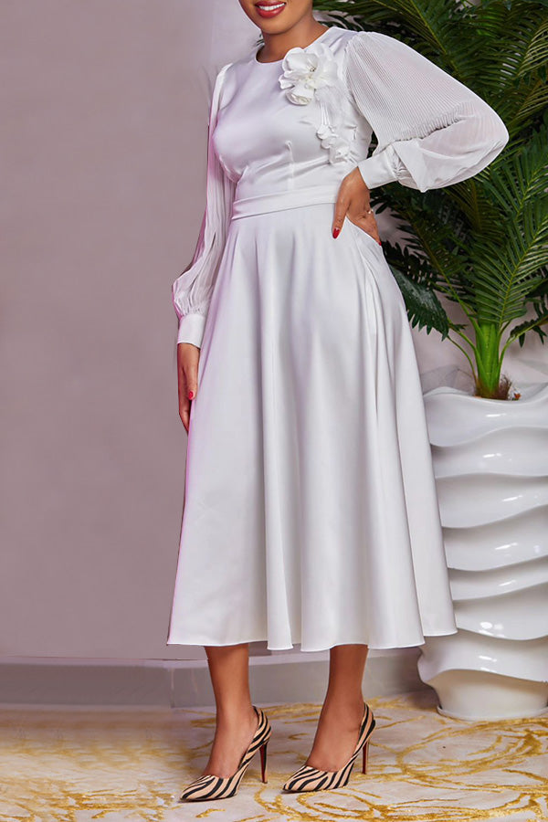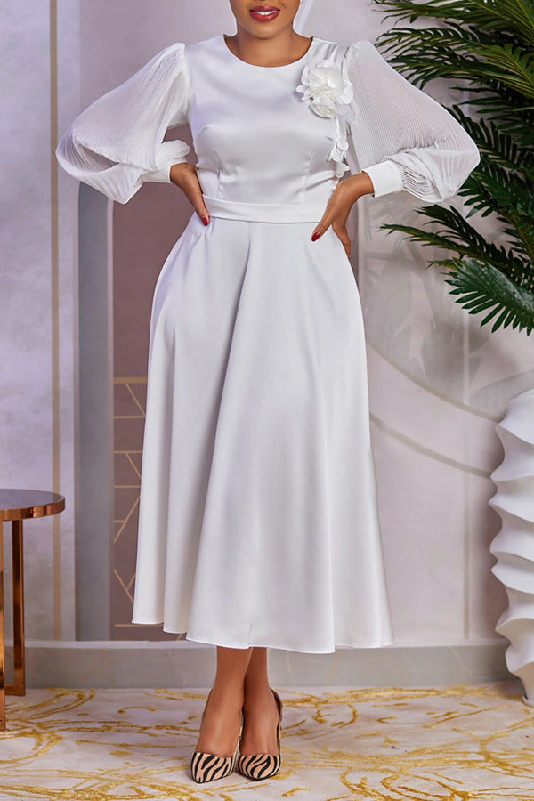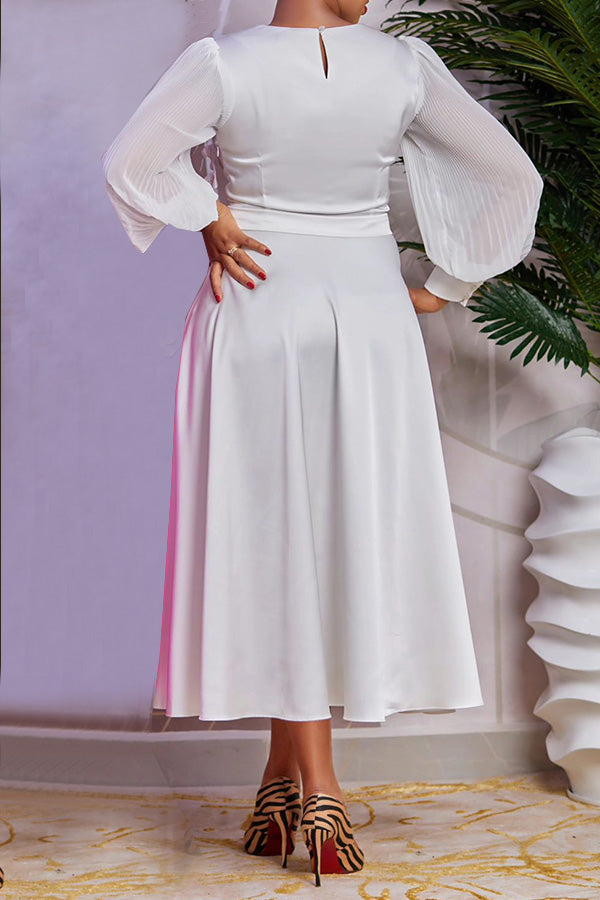 Stay on trend this season in our new Elegant Lantern Sleeve Midi Dress. A sophisticated blend of style and comfort. Crafted from lantern sleeves with a silky fabric, its calf-length silhouette exudes elegance, while the sheer long sleeves add a touch of allure. Perfect for nights out or dinners.