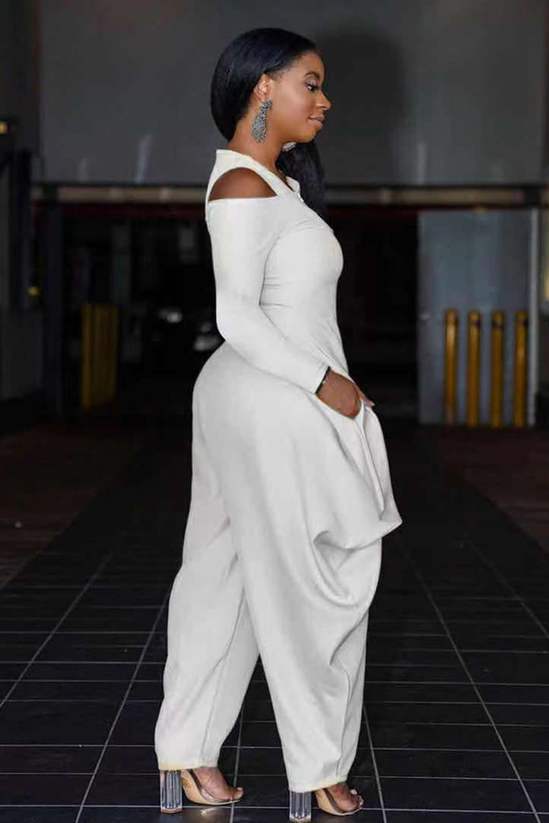 Cold Shoulder Half Zip Irregular Harem Casual Jumpsuit
