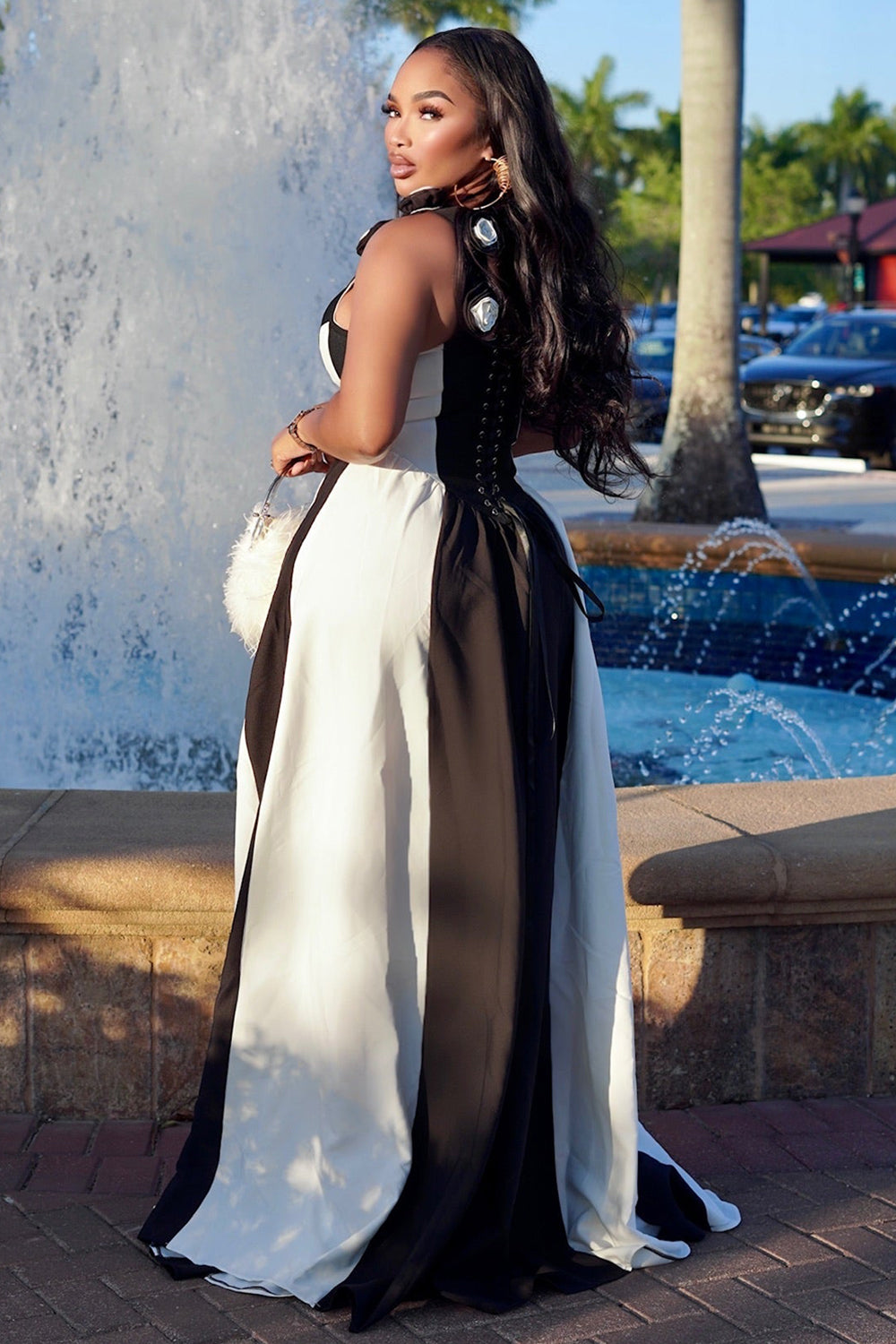 Colorblock Stripe Slit Party Sleeveless Maxi Dresses