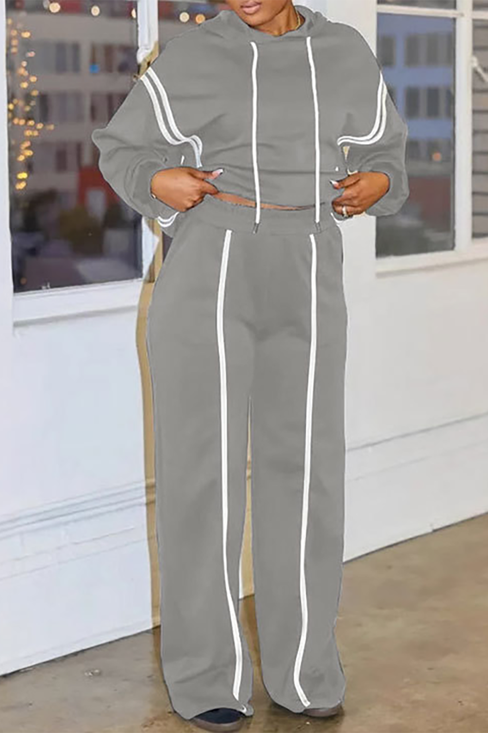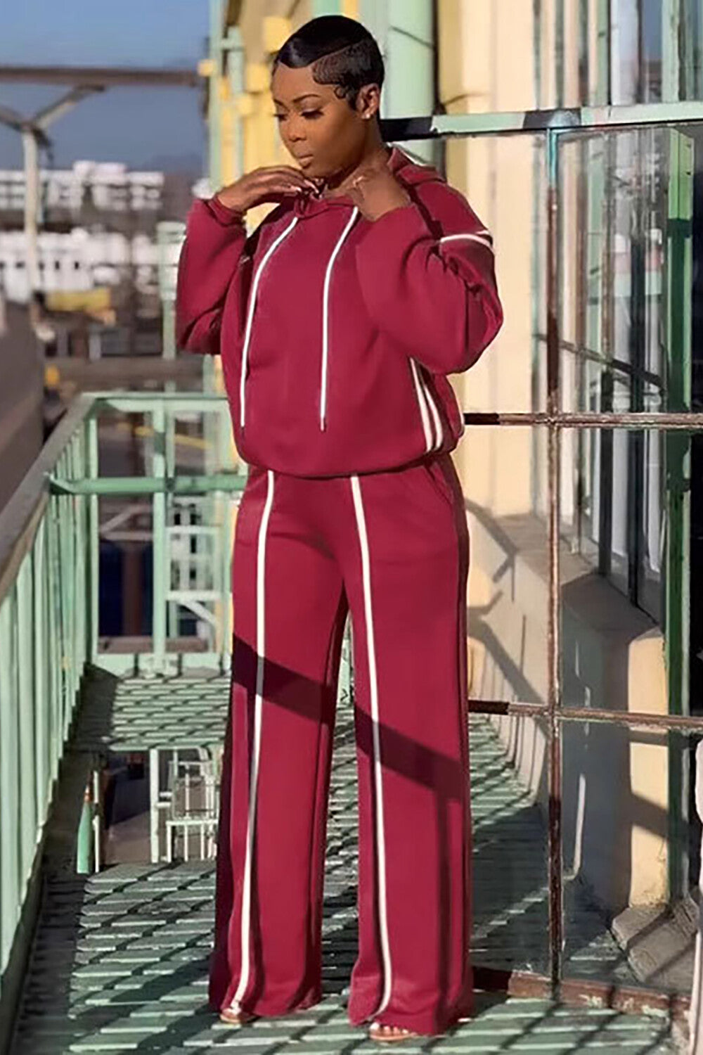 Colorblock Trim Long Sleeve Hoodie Straight Leg Pants Casual 2pcs Set-Black