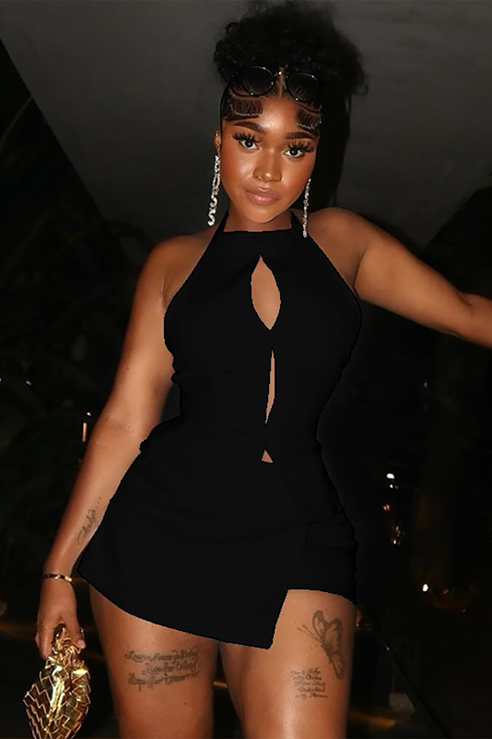 Cutout Sleeveless Halter Neck Top Irregular Mini Skirt 2pcs Set-White