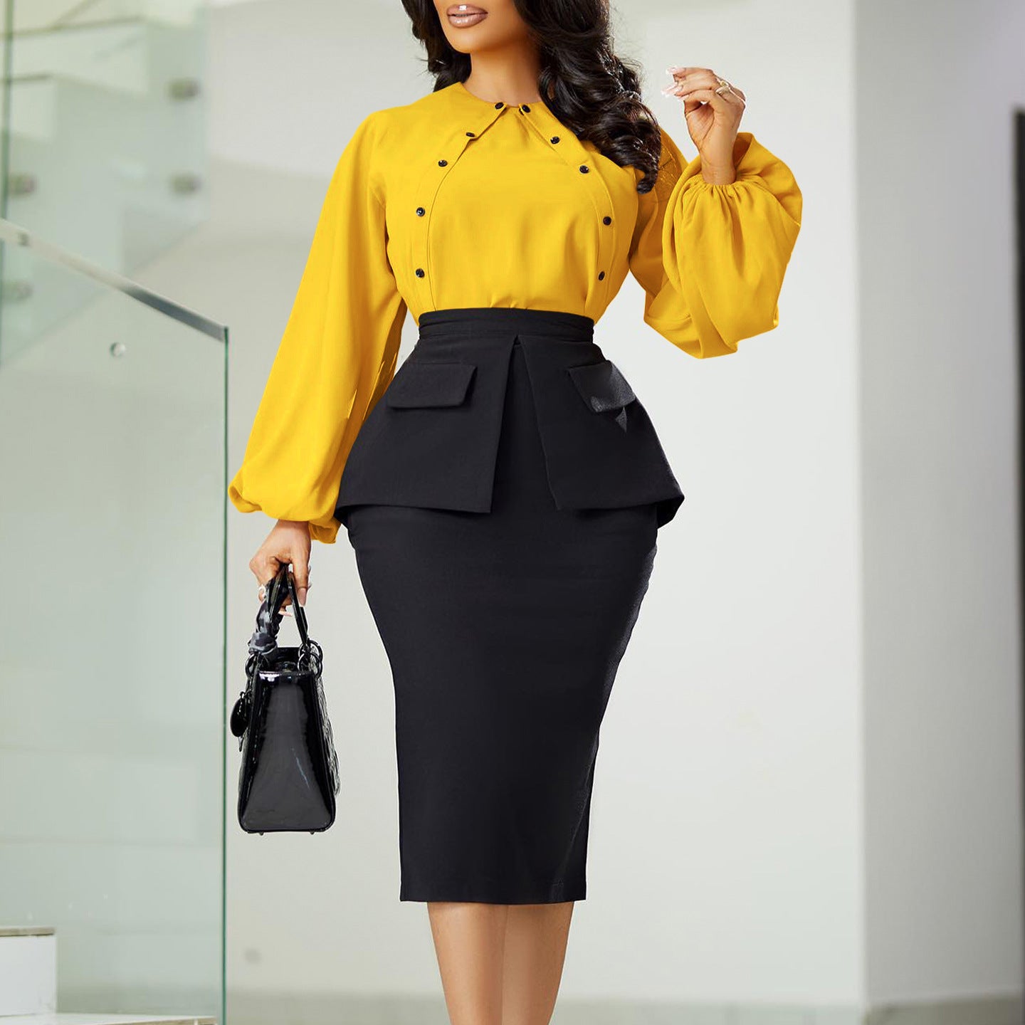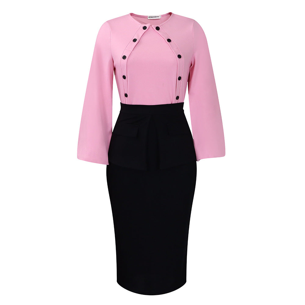 Fashionable Temperament Ol Long-Sleeved Top Hip Skirt Two-Piece Set