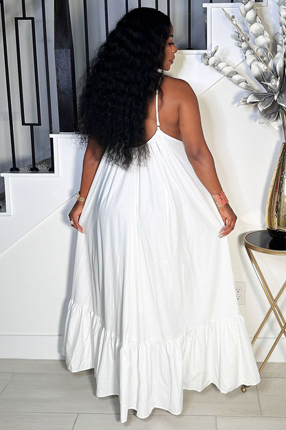Floral Print Oversized Quilted Hem Vacay Cami Maxi Dresses-White [Pre Order]