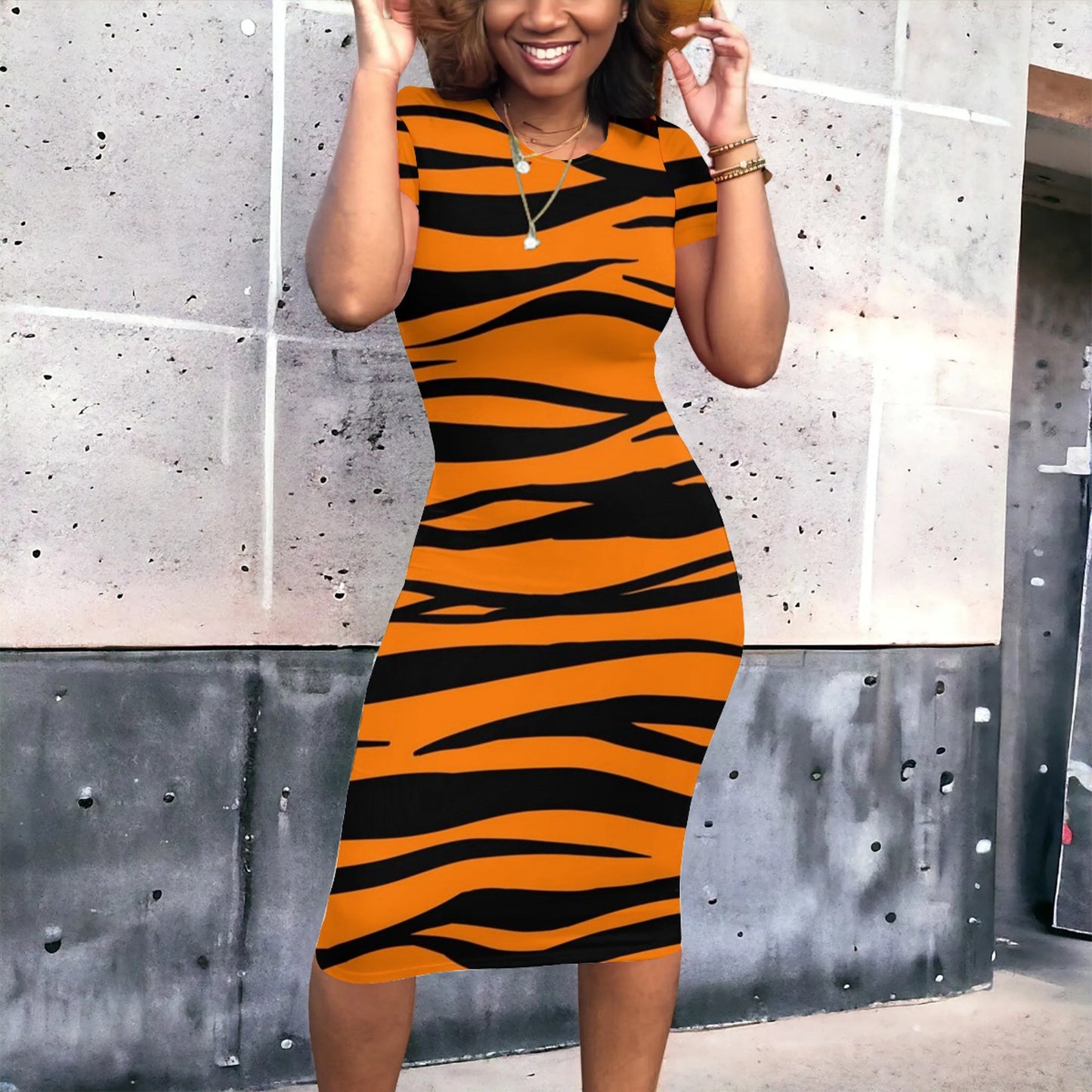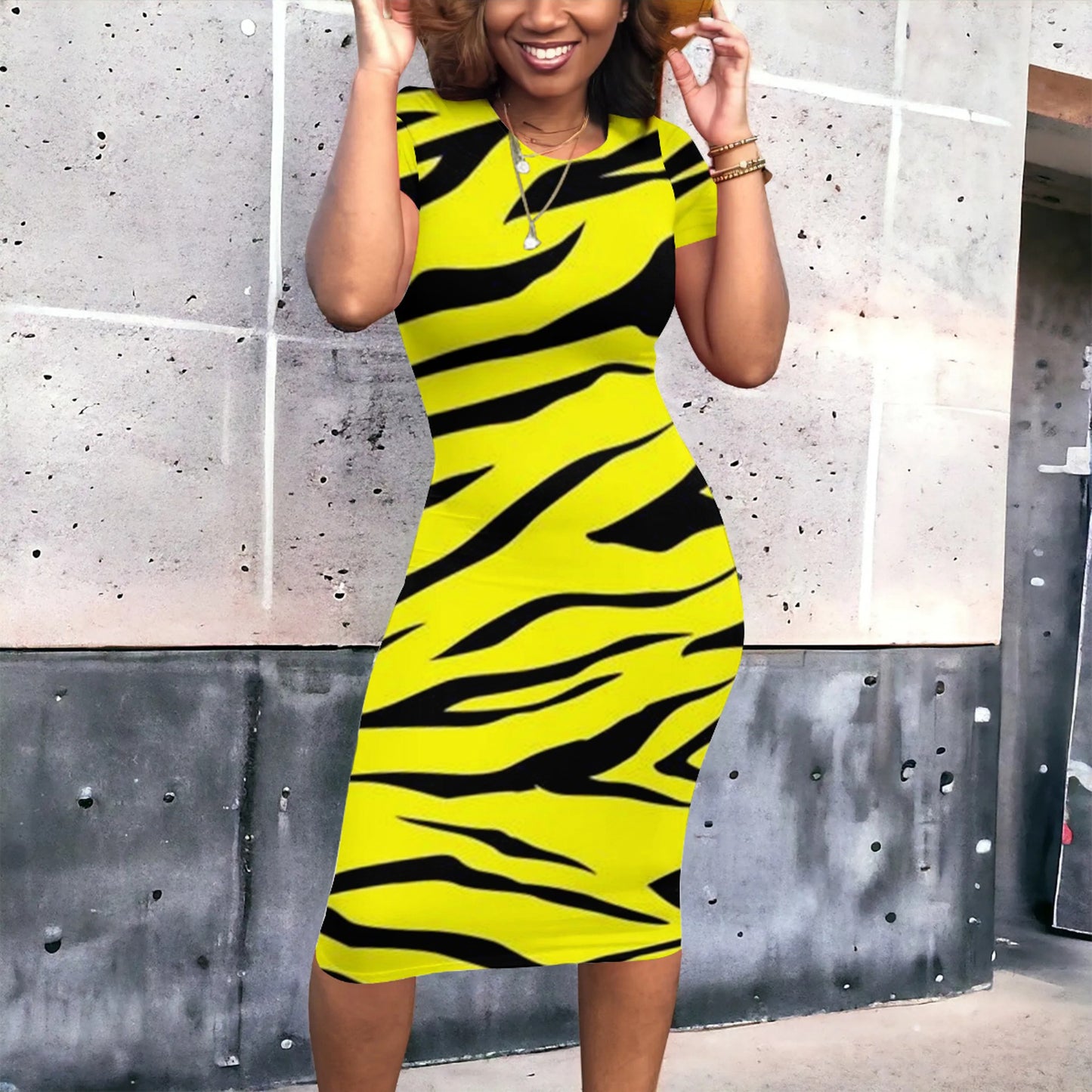 Irregular Striped Short Sleeve Tight Dress