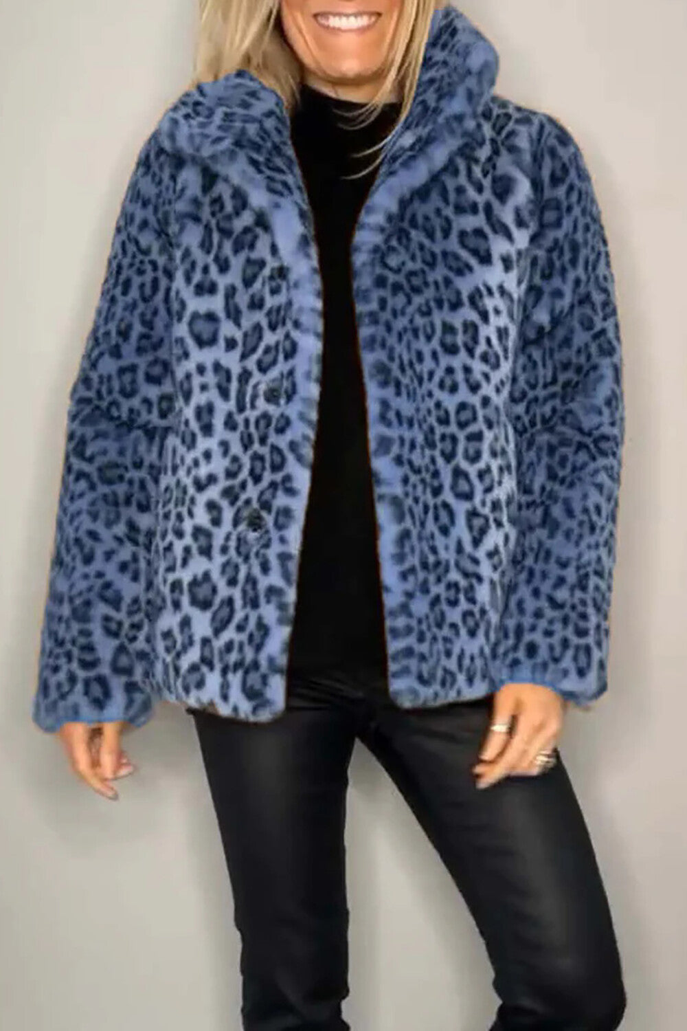 Leopard Fuzzy Long Sleeve Turndown Collar Coat-LightBrown