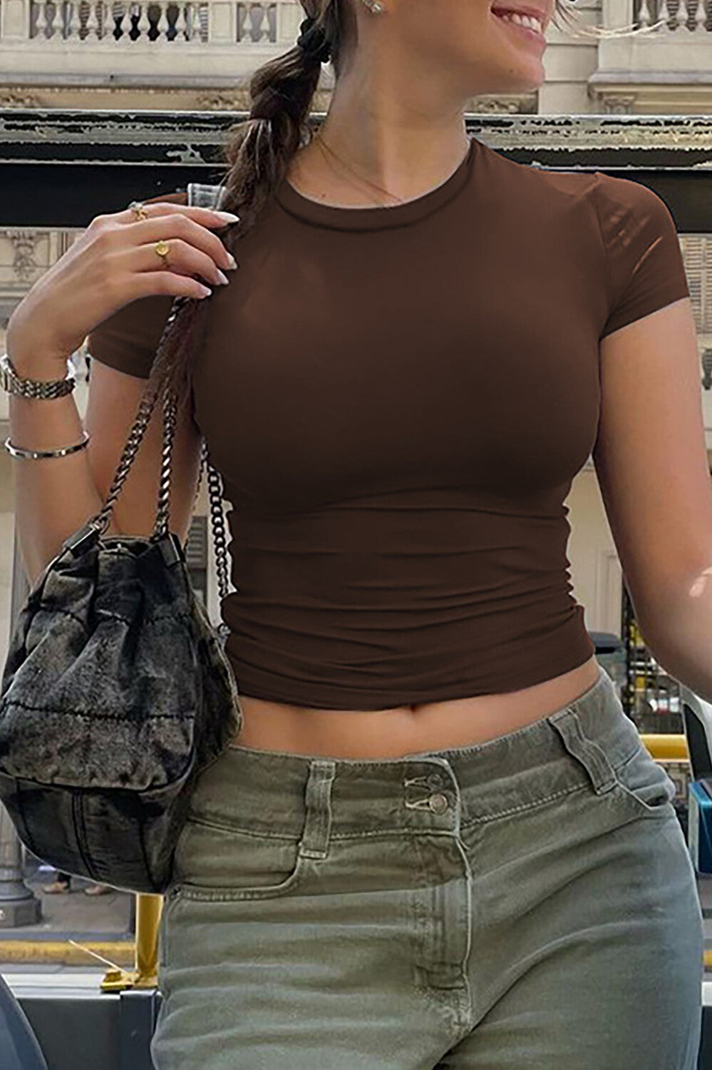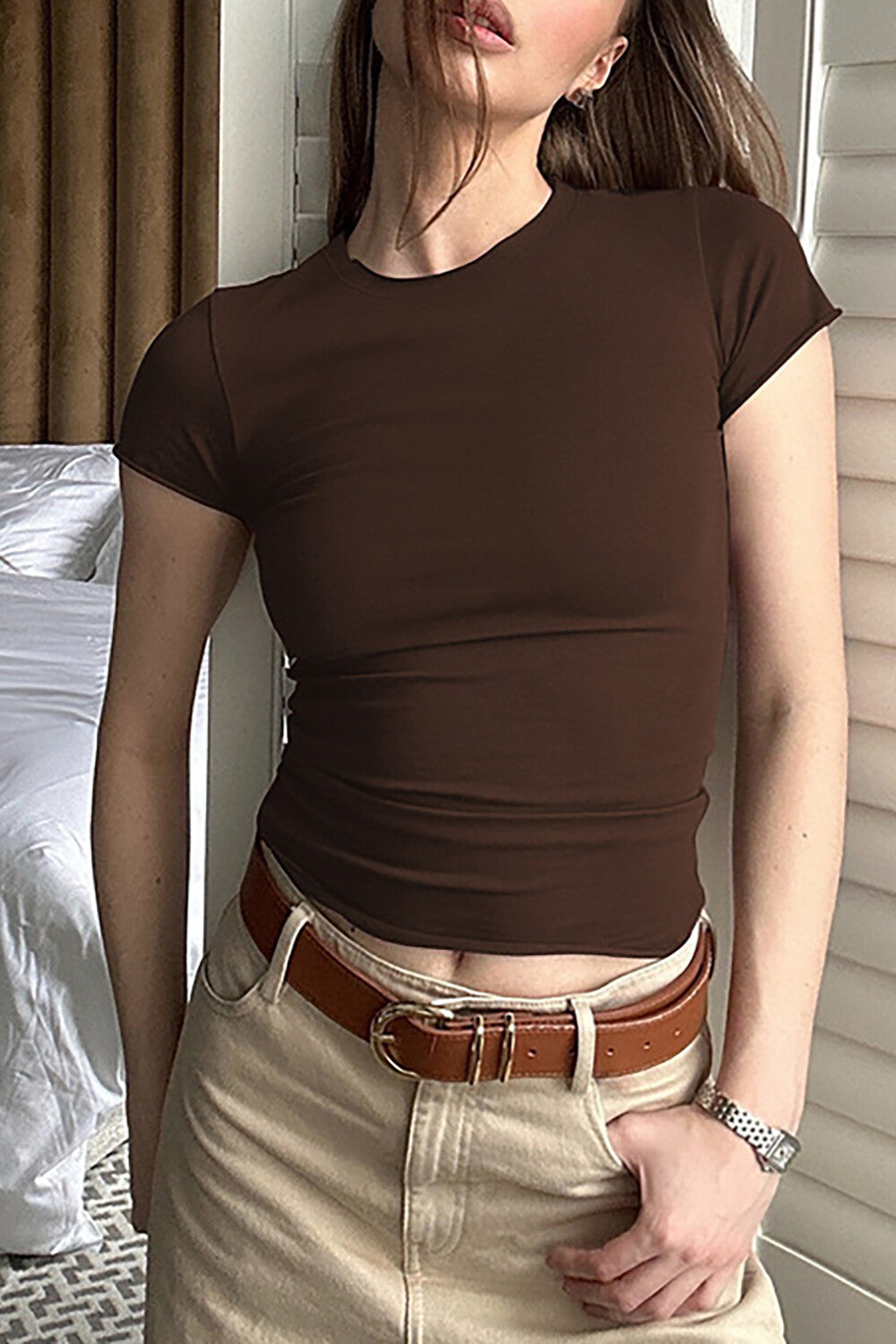 Round Neck Short Sleeve Solid Color Slim Fit Casual T-shirt-Purple