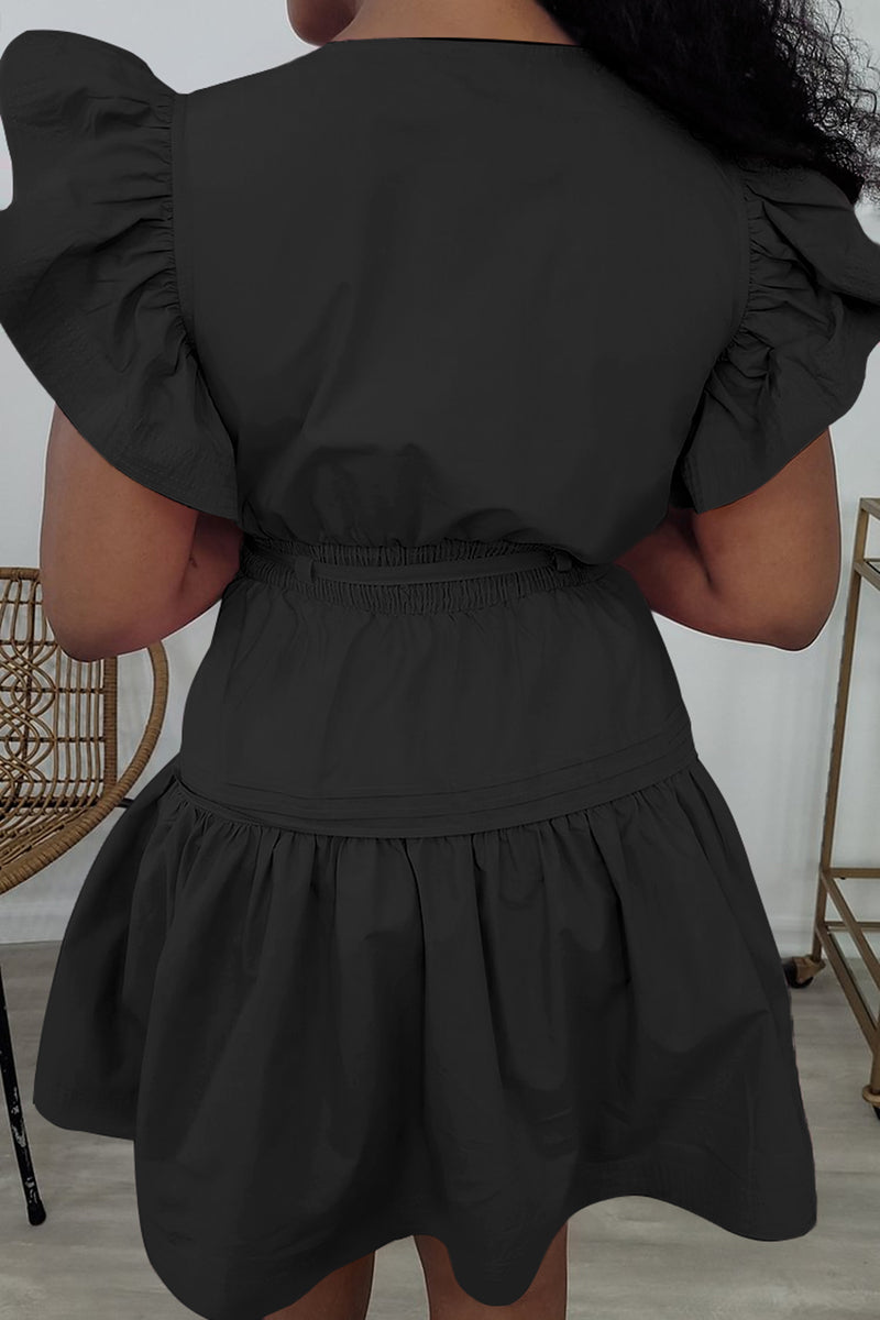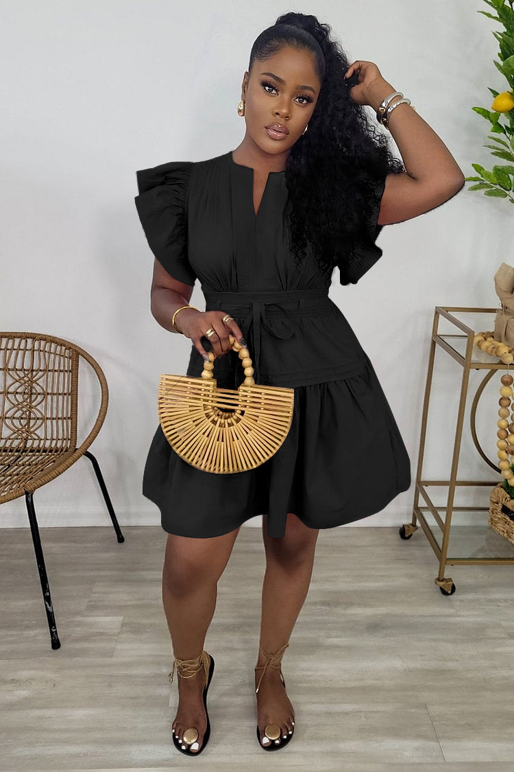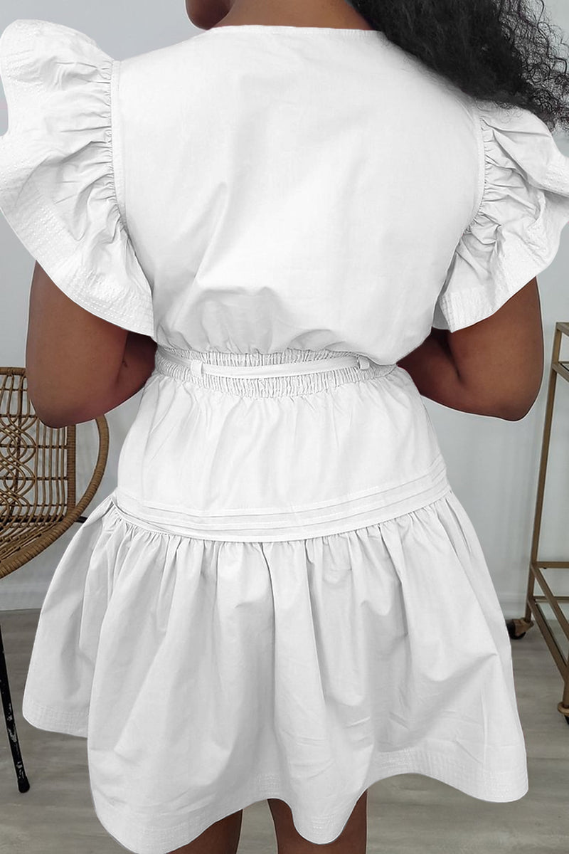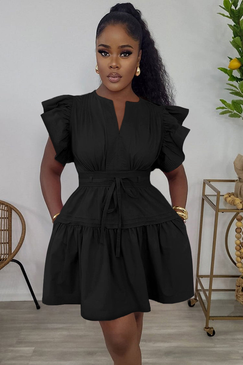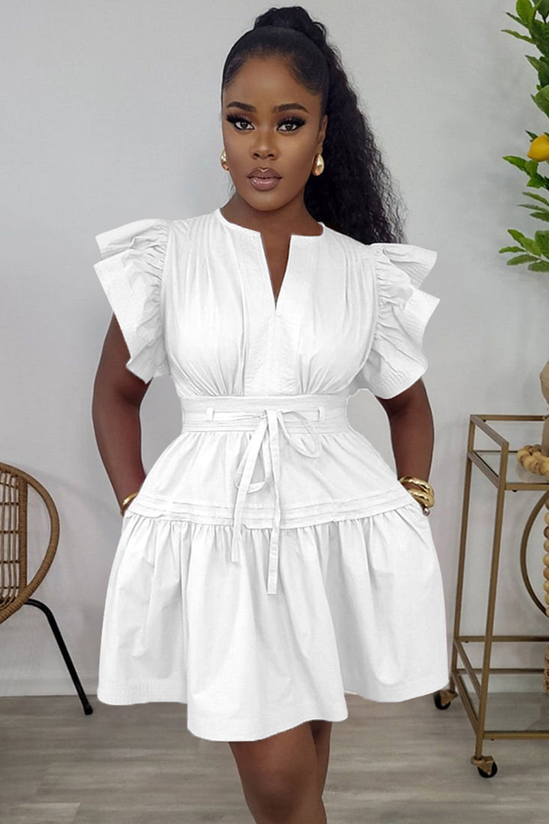 Ruffle Sleeveless Notched Neck Quilted A-Line Mini Dresses-Pink