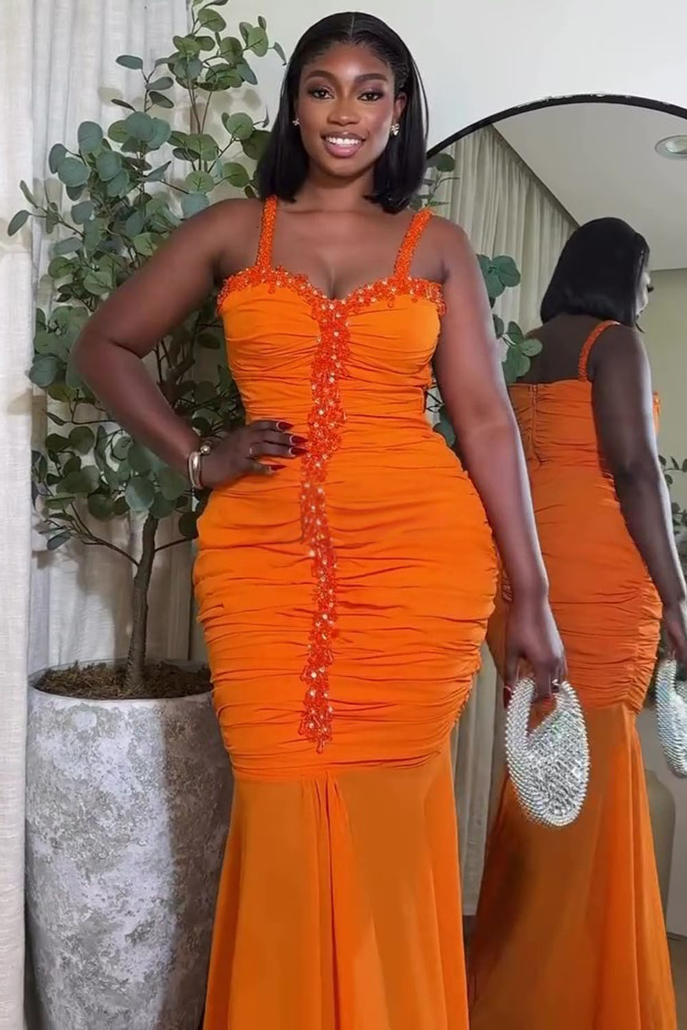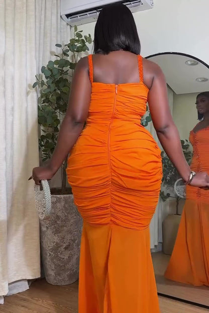 Sequin Decor Ruched Cami Party Maxi Fishtail Dresses-Orange [Pre Order]