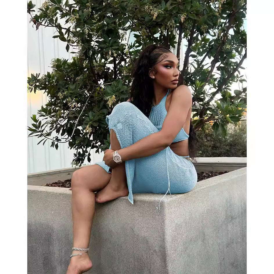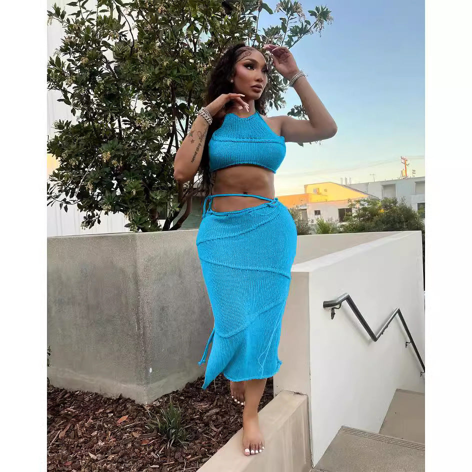 Sexy Bandeau Backless Lace-up Backless Top Tassel Knitting Suit