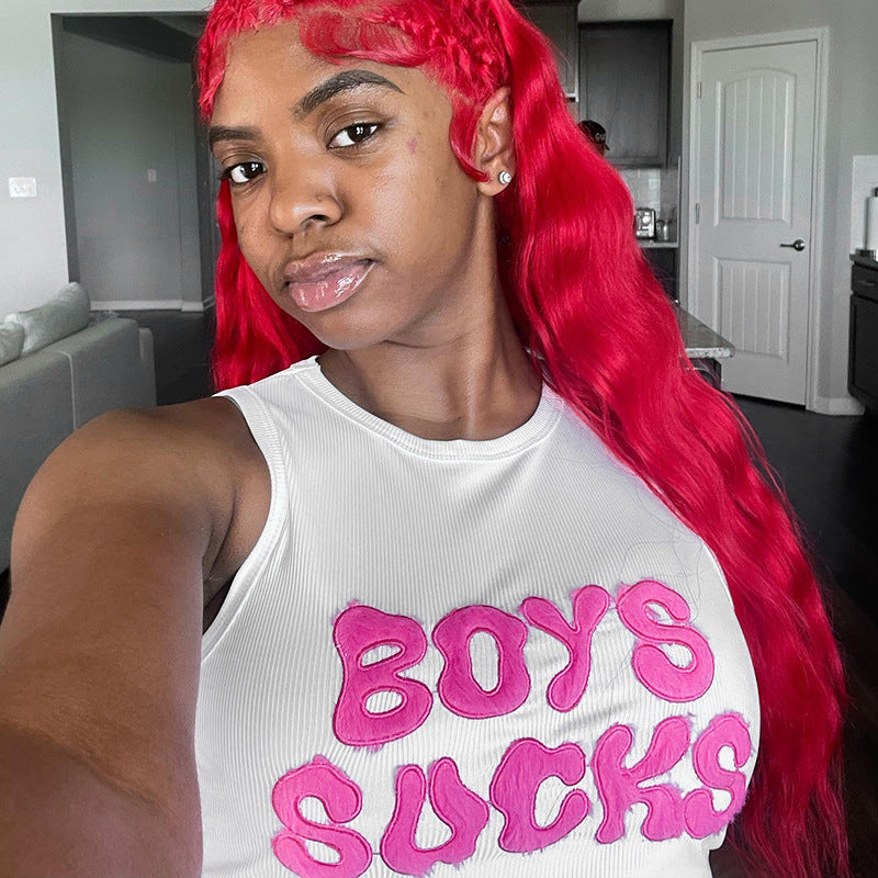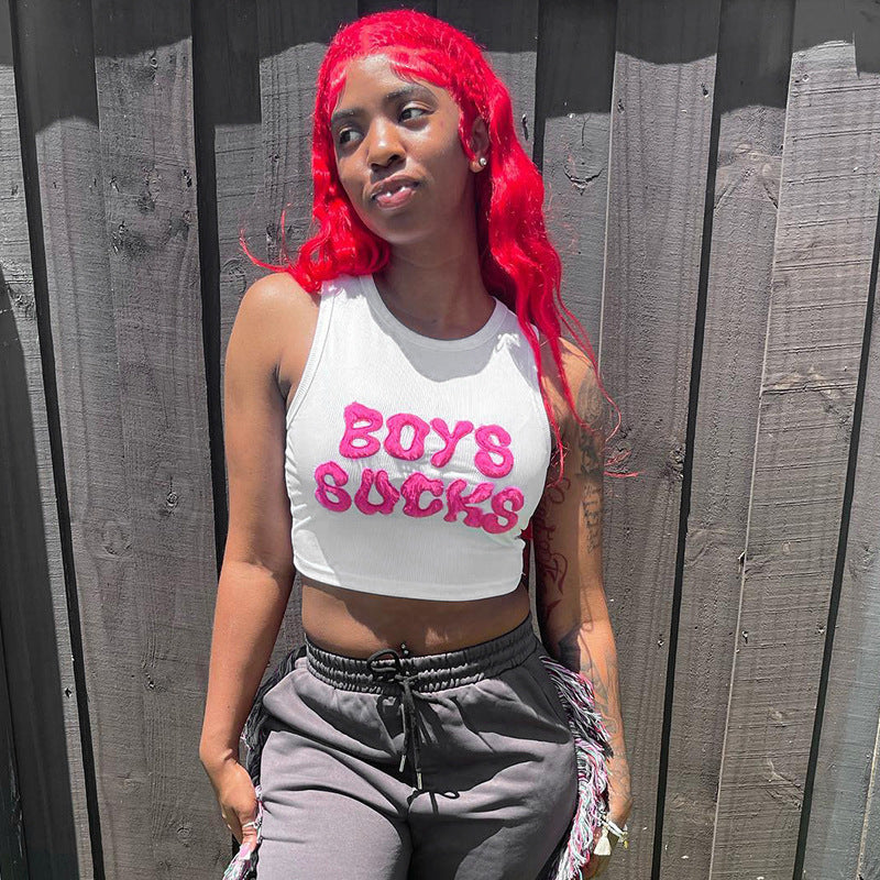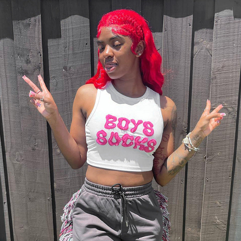 Short Sleeve Retro Alphabet Summer New Sleeveless T-shirt Fashion Brand Hot Girl Vest