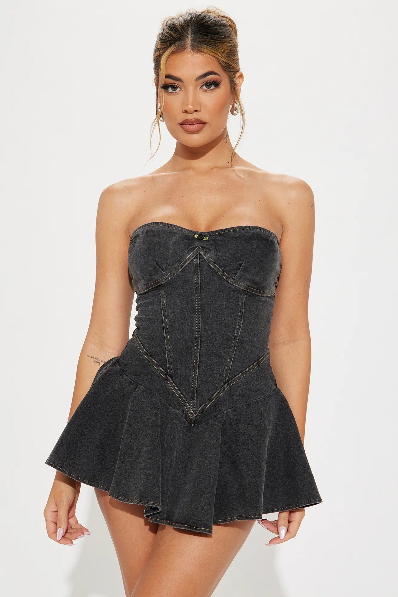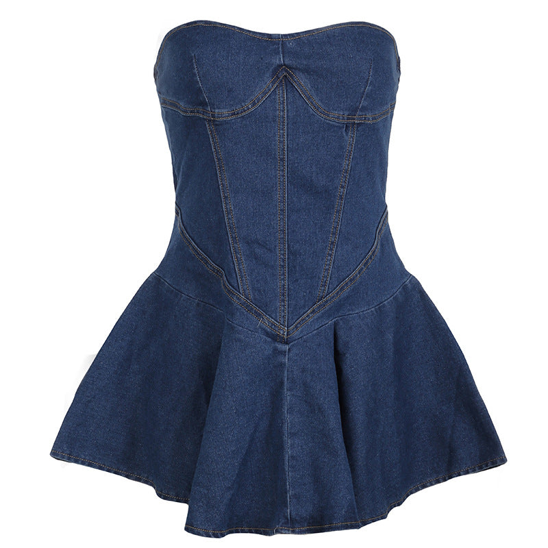 Skinny Slimming Sexy Featured A- line Denim Dress Short Skirt