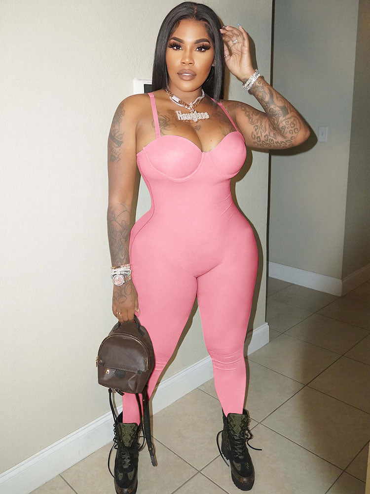 Features:Sleeveless. spaghetti strap. solid color. long pants. one-piece romper.