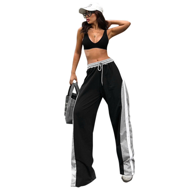 Striped Stitching Contrast Color Straight Casual Loose All-Match Drape Summer Sports Pants