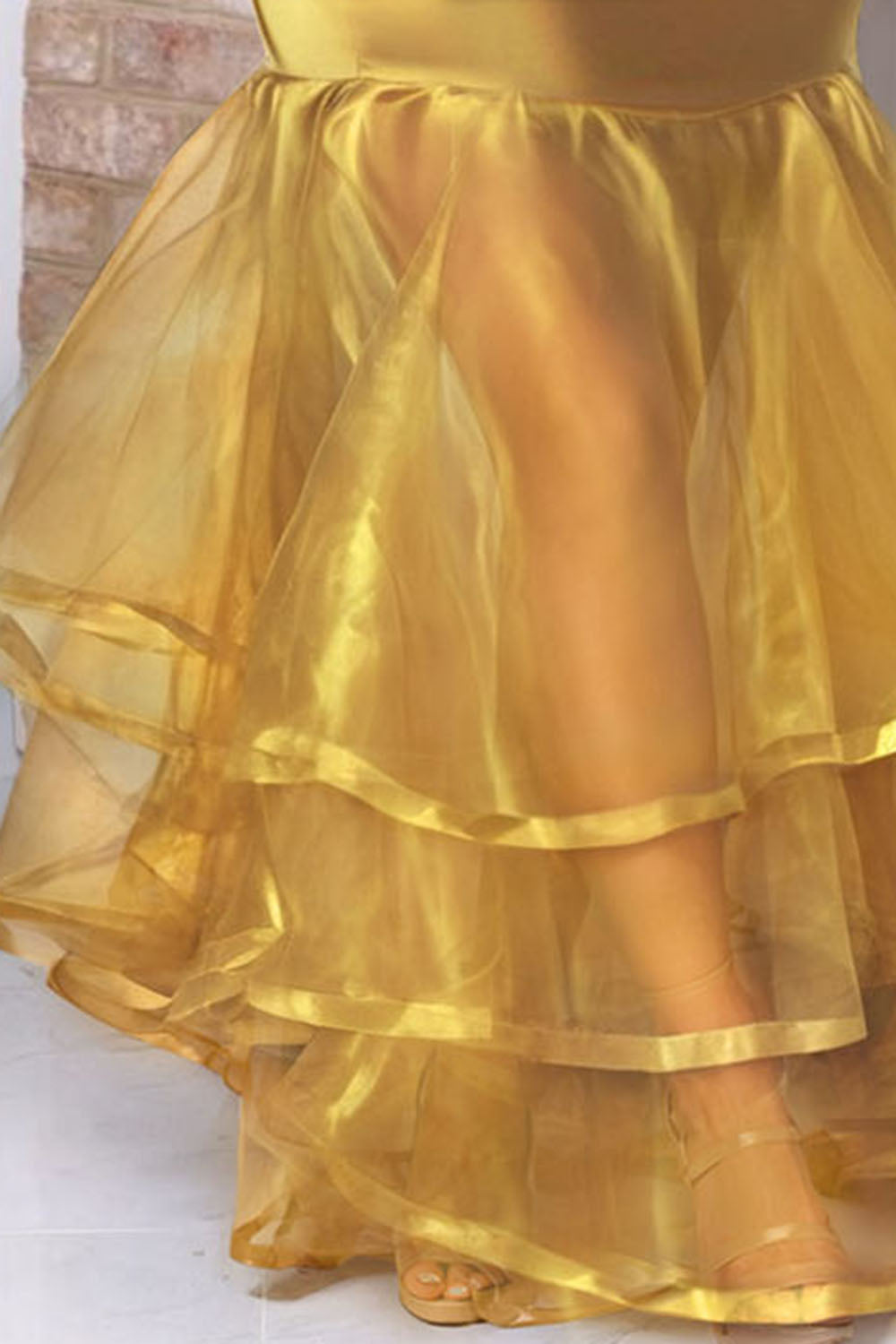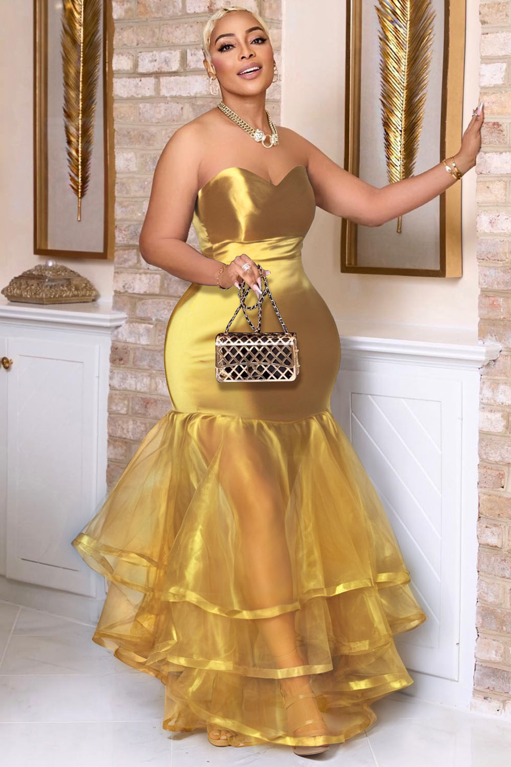 Sweetheart Neck Tulle Patchwork Party Fishtail Maxi Dresses-Gold [Pre Order]