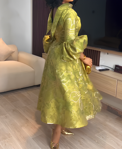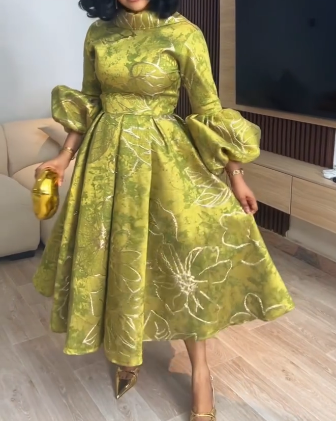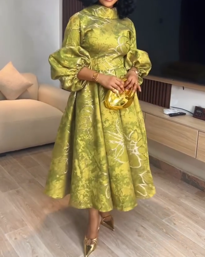 This dress is made of soft high-end custom jacquard fabric with bright colors. It is suitable for parties. Wearing it, you will definitely be the most eye-catching!