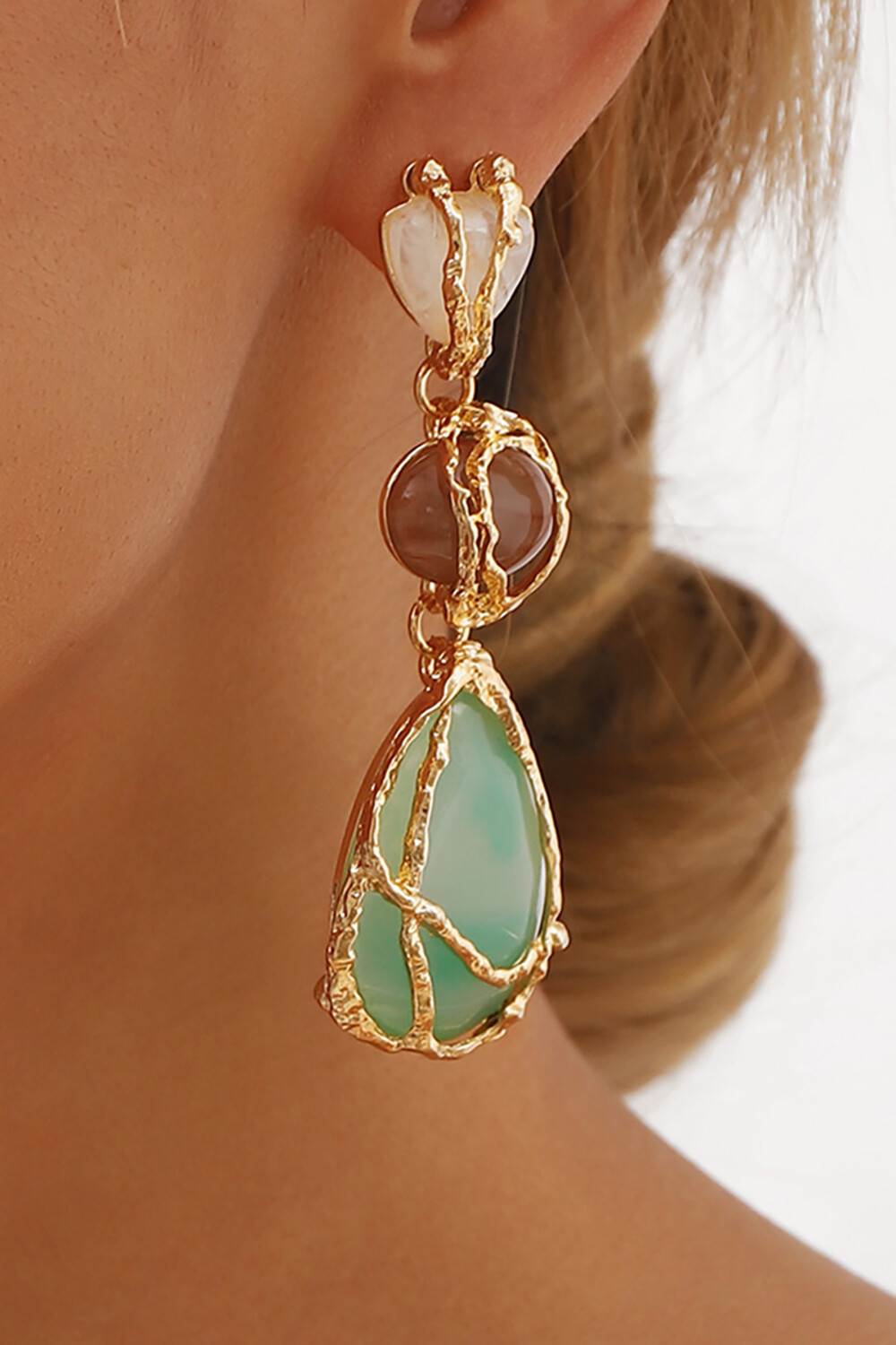 Alloy Wrapped Drop Shaped Pendant Colorblock Dangle Earrings